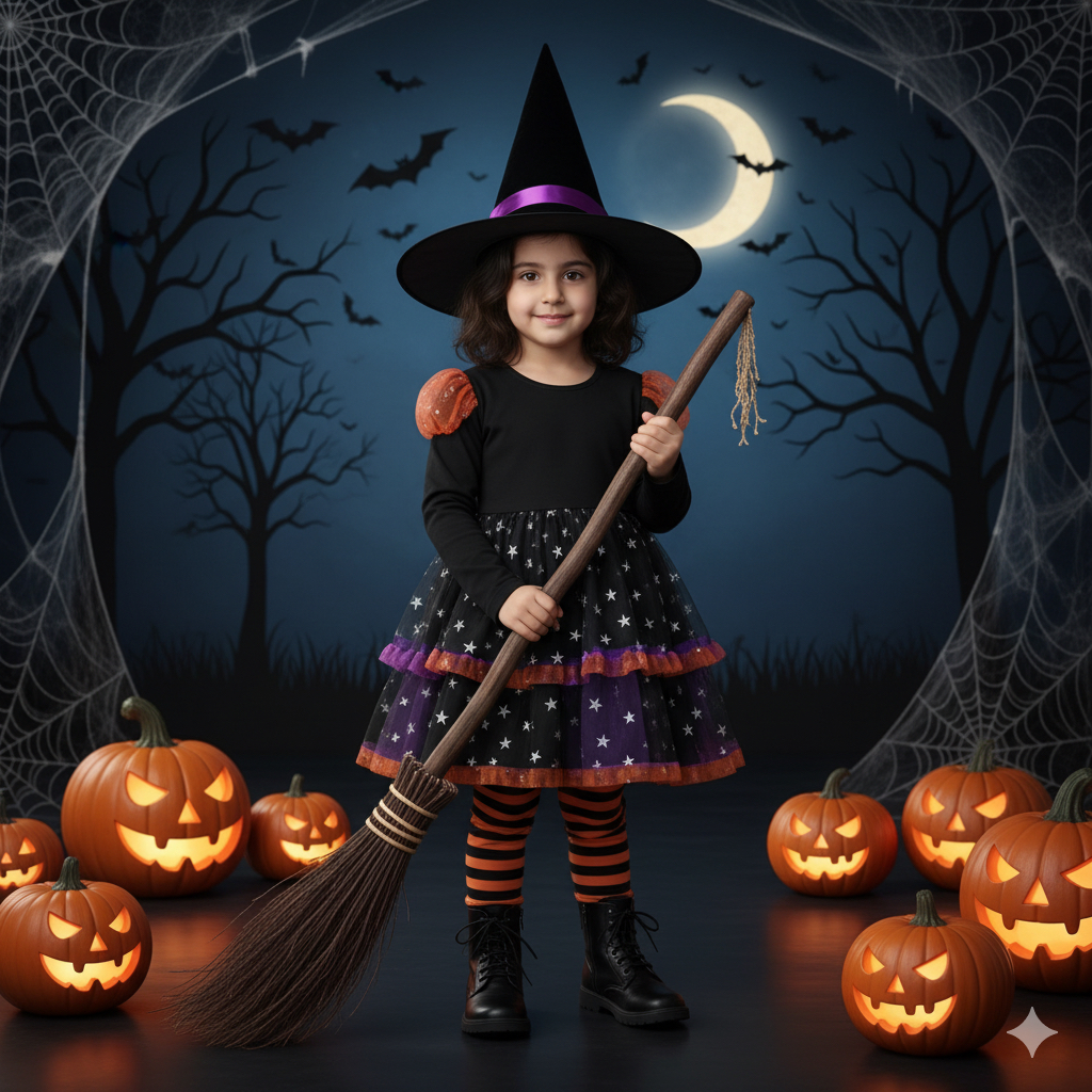 هر پرامپت بهصورت دقیق طراحی شده تا خروجی طبیعی، کودکانه و متناسب با فضای جشن هالووین بده.